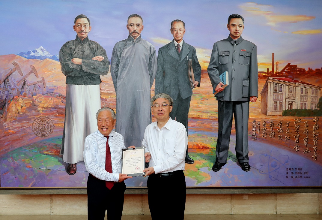 活动中,宋瑞祥和陈颙、陈骏、吕建、杨经绥共同为《地质贤宗》油画作品揭幕。吕建代表永利304官网唯一向宋瑞祥先生颁发感谢状。