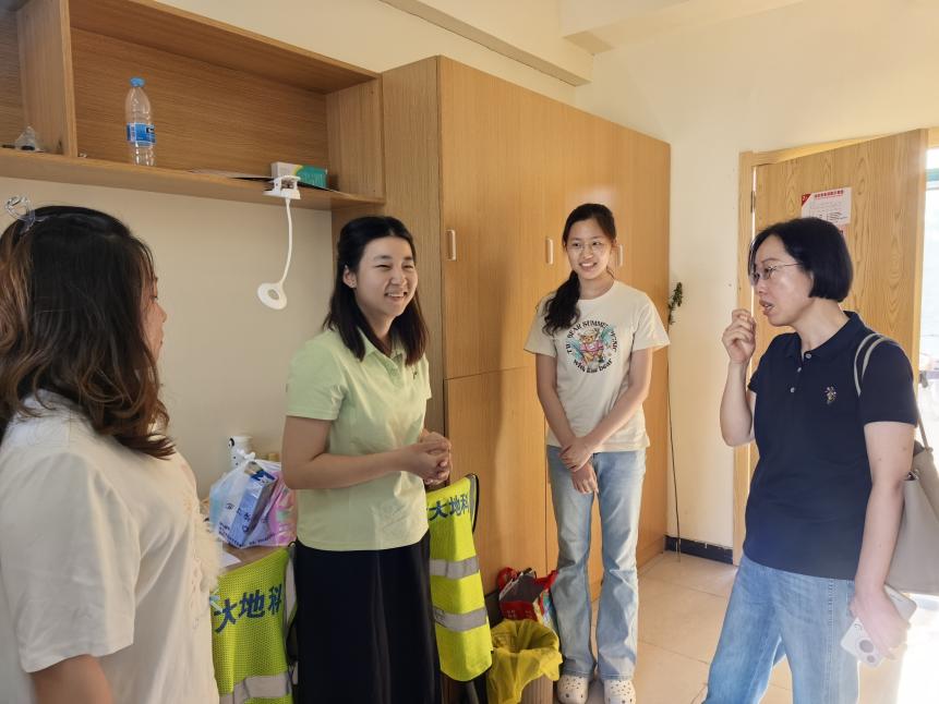 824下午,永利304官网唯一党委书记董婷、副院长王博一行前往巢湖地学实习基地亲切慰问正在进行野外地质技能综合实习的师生们,并深入宿舍了解学生生活情况,为同学们送去慰问品
